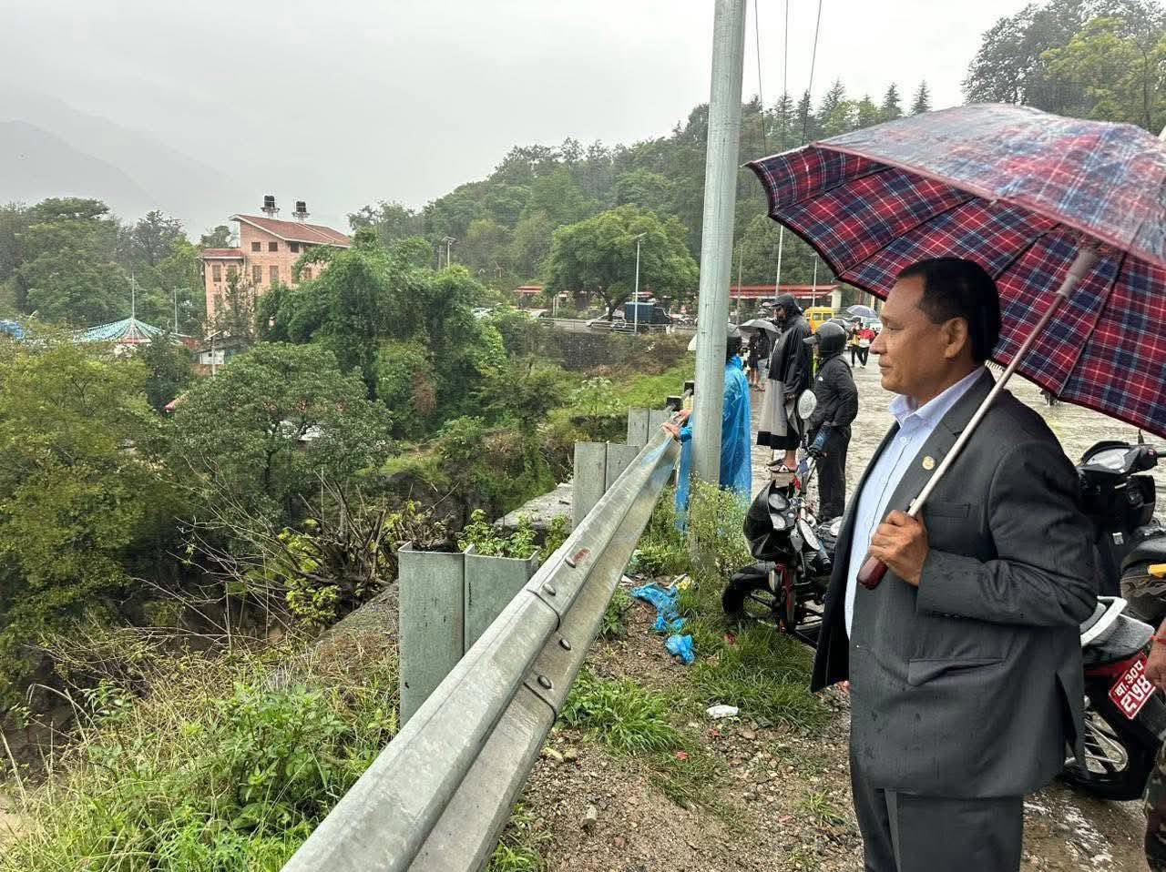 Minister Ghising has inspected the bridge under construction over the Kankai Mai River, along the Postal Highway section of Jhapa Rural Municipality, as well as the small bridge at Sanomai that has been affected by the rains, said Tej Prakash Prasai, the Assistant Chief District Officer of Jhapa.